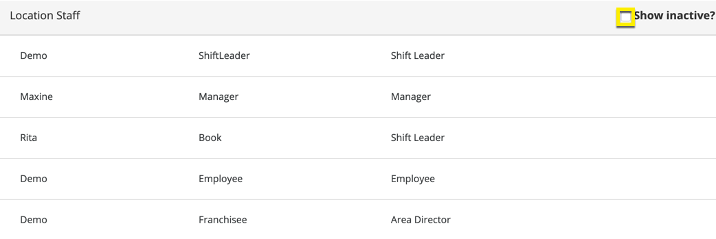 Location Staff: Finally, scroll down to see a list of all active employees assigned to this store.