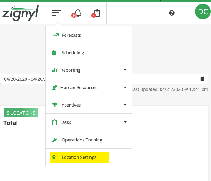 Location Settings control the specific attributes of a single store. Navigate to: Side Menu > Location Settings.